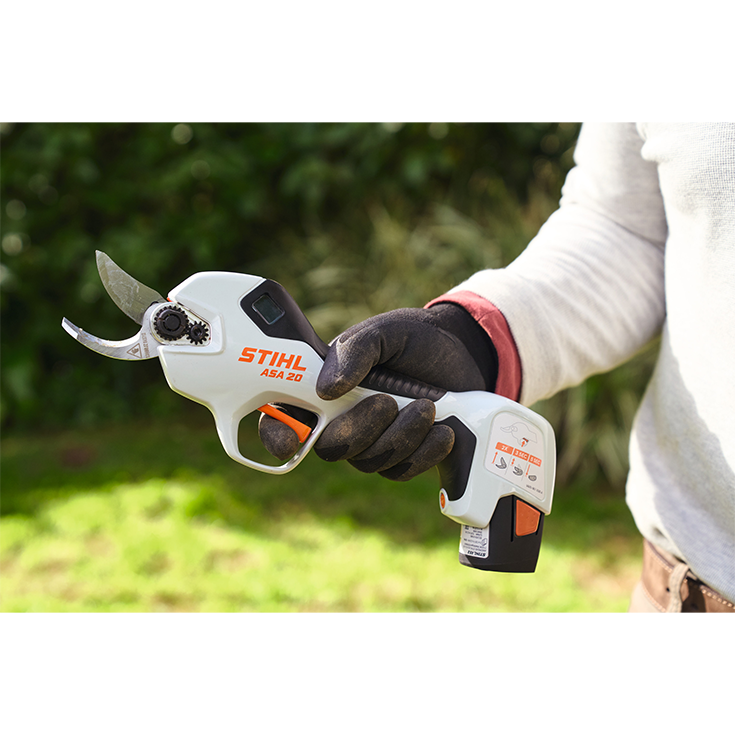 Krahasuar me gërshërët tradicionale të krasitjes, gërshëra me bateri STIHL ASA 20 ofron një lehtësim të dukshëm gjatë punëve të krasitjes si kujdesi ndaj pemëve, shkurreve, bimëve zbukuruese dhe hardhive – në shtëpi, në kopsht, si dhe gjatë punës në pemëtore apo vreshta.