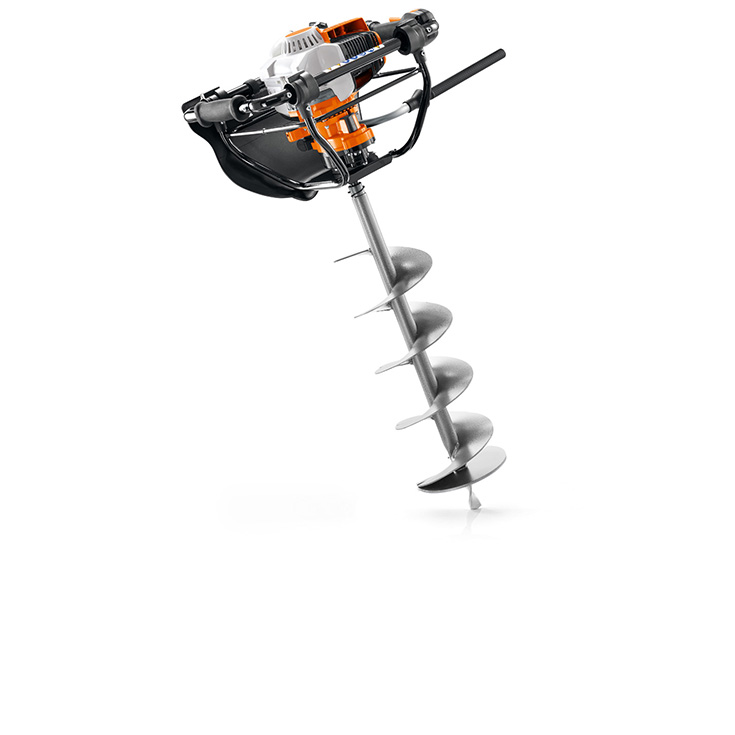 Turjelë për shpim në tokë, e manovrueshme nga një person, me frenë shpimi QuickStop, motor 4-MIX me serbator më të madh, dorezë mbajtëse me shumë pak dridhje, dorezë kontrolli me buton ndalues, sistem jetëgjatë të filtrimit të ajrit dhe jastëk të madh mbështetës.