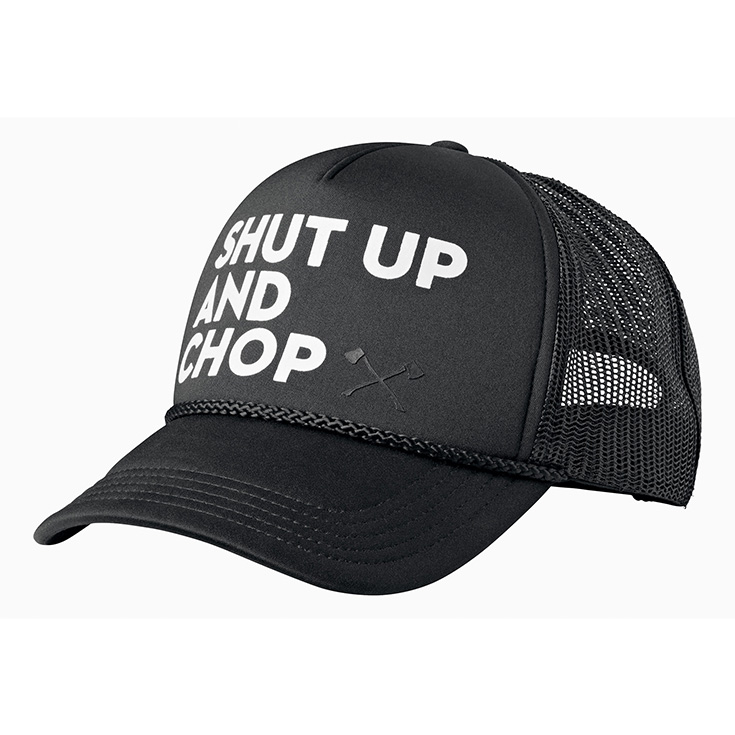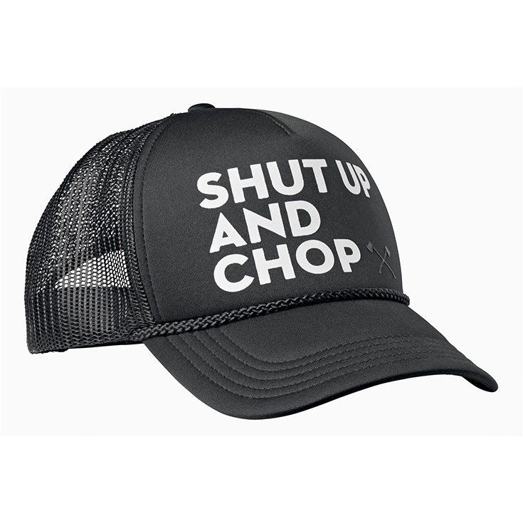 Një kapele e shkëlqyer! Ju do të jeni të kompletuar me kapelen tonë të zezë – dhe jo vetëm për evente. Dizajni i tij modest përshtatet me çdo lloj veshjeje. Në pjesën e përparme të saj janë qëndisur gërmat “SHUT UP AND CHOP”. Madhësia e kapeles mund të rregullohet duke përdorur shiritin shtrëngues në pjesën e pasme të saj.