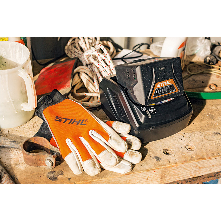 230 V. Kompatibël me bateritë STIHL AK dhe AP. Me tregues niveli të karikimit të baterisë (LED). Lidhje me kabëll me ngjitësin Velcro. Montimi në mur është i mundur.