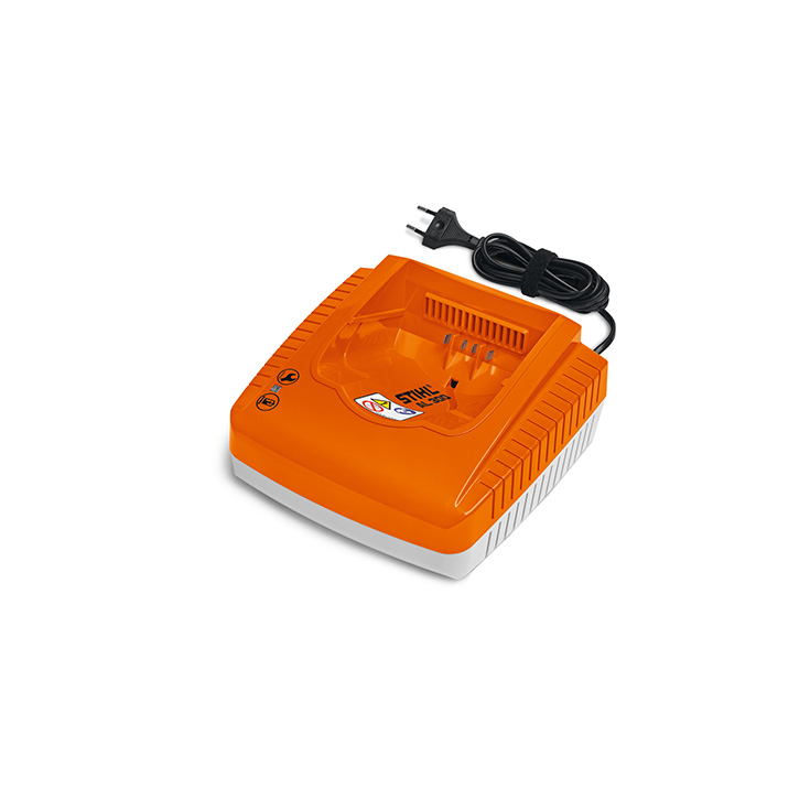 230 V. Për kohë më të shkurtër karikimi, për bateritë STIHL AK, AP dhe AR. Përmban mekanizmat e duhur për montimin në mur dhe për mbledhjen e saktë të kabllit nga pas. Ofron treguesin e mënyrës së funksionimit (LED) dhe ftohje aktive të baterisë.