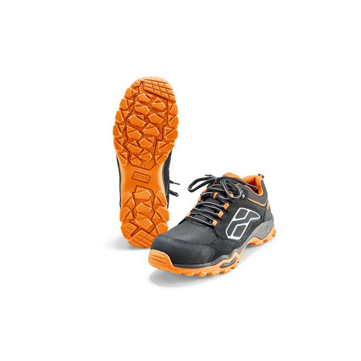 Material i sipërm i bërë prej lëkurës së cilësisë së lartë me kokrriza dhe rezistente ndaj ujit. Ngjyrë e zezë, e ajrosshme dhe astar që thahet shpejt, me qafa me vata, rripa reflektues në të dyja anët, shtroja që hiqen, mbrojtje dhe gomë rezistente ndaj vajit/karburantit/ taban EVA në përputhje me EN 20345 S2.