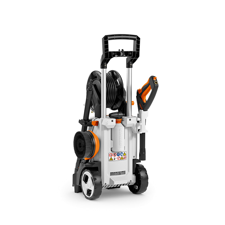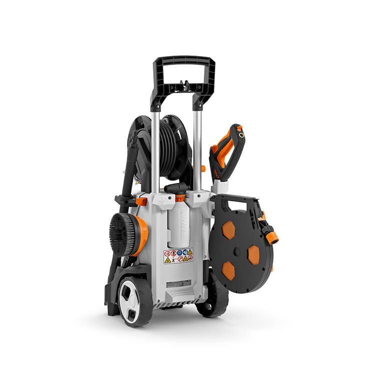 Pastrues i fuqishëm me presion të lartë (135-bar) për përdorim jashtëzakonisht të rehatshëm. I pajisur me mbështjellëse të tubit spërkatës me një udhëzues tubi që mundëson magazinim veçanërisht të drejtpërdrejtë dhe praktik të tubit me presion të lartë dhe tub presioni të fortë dhe rezistent prej 9 m, të përforcuar me çelik.