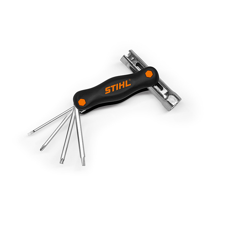 Praktike, vegël cilësore shumëfunksionale e vendosur në një kuti plastike të fortë. Kaçavidë me teh të sheshtë 3.5 mm për rregullimin e karburatorit dhe pastrimin e brazdave, kaçavidë Torx TX 27 dhe qese najloni me rrip.